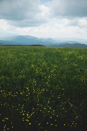 Wildflowers bloom in early spring on a high bald deep in the blue ridge mountains.