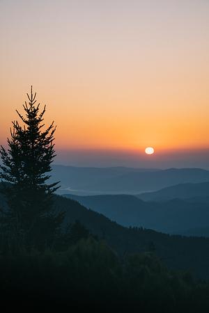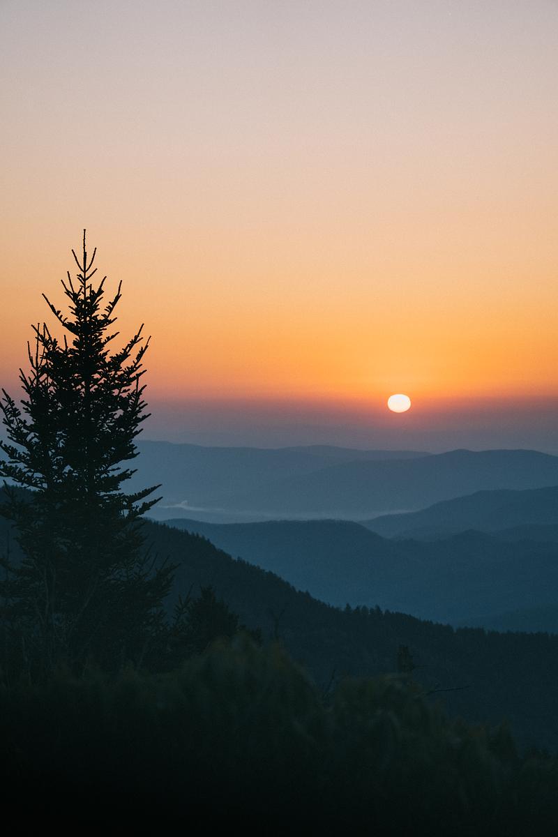A clear, warm sunrise over the blue ridge mountains. Taken near Mount Mitchell.